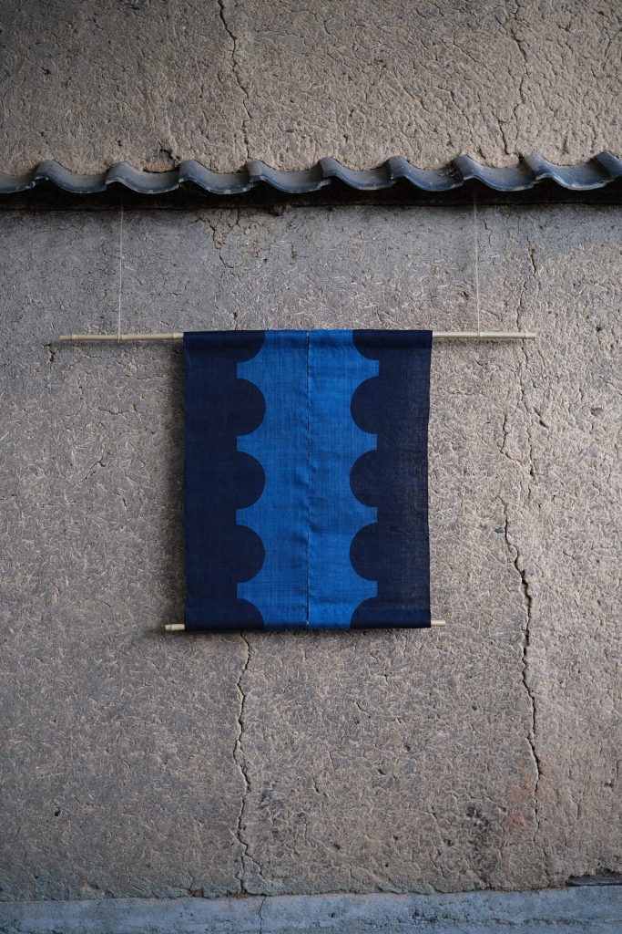 幾何文藍型染飾布 ” Geometric “